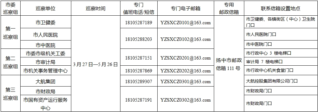 巡察期间(2025年3月27日—2025年5月26日),市委各巡察组设专门值班电话、接收短信手机、专门电子邮箱和专用邮政信箱,并公布“江洲e巡”微信二维码。电话受理时间为工作日9:00-18:00(具体澳门5不中到10不中的网站的联系方式见附表)。根据巡察工作职责和有关规定,巡察组主要受理涉及被巡察单位领导班子及其成员、市委管理的其他干部以及下一级主要负责人、相关重点岗位干部(含已退休、已调离)的问题反映。其他不属于巡察受理范围的信访问题,将按规定转交被巡察单位和有关部门认真处理。市委巡察组信访受理截止日期为5月21日。